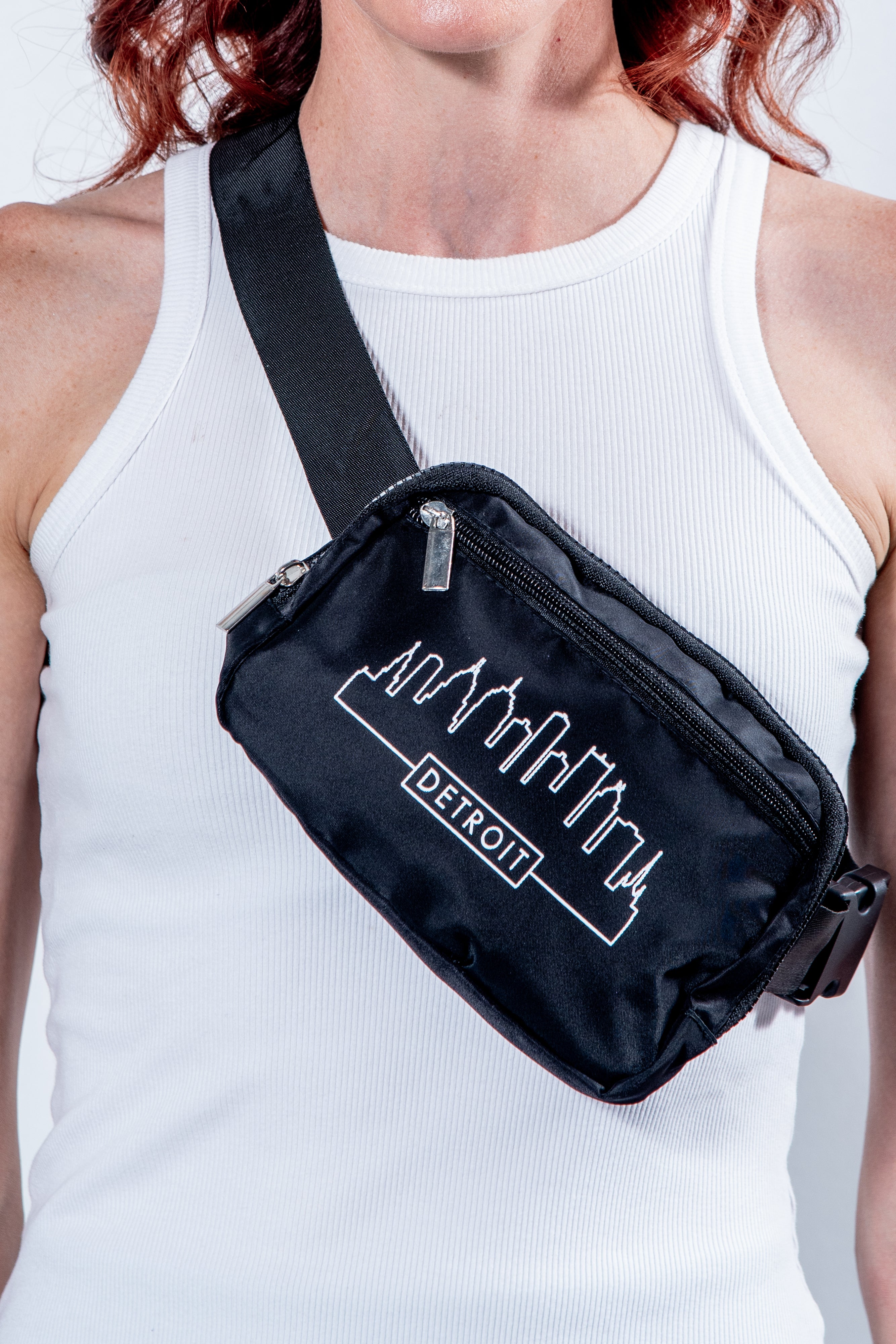 BLACK DETROIT SKYLINE BELT BAG DETAILS: