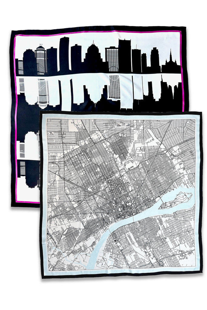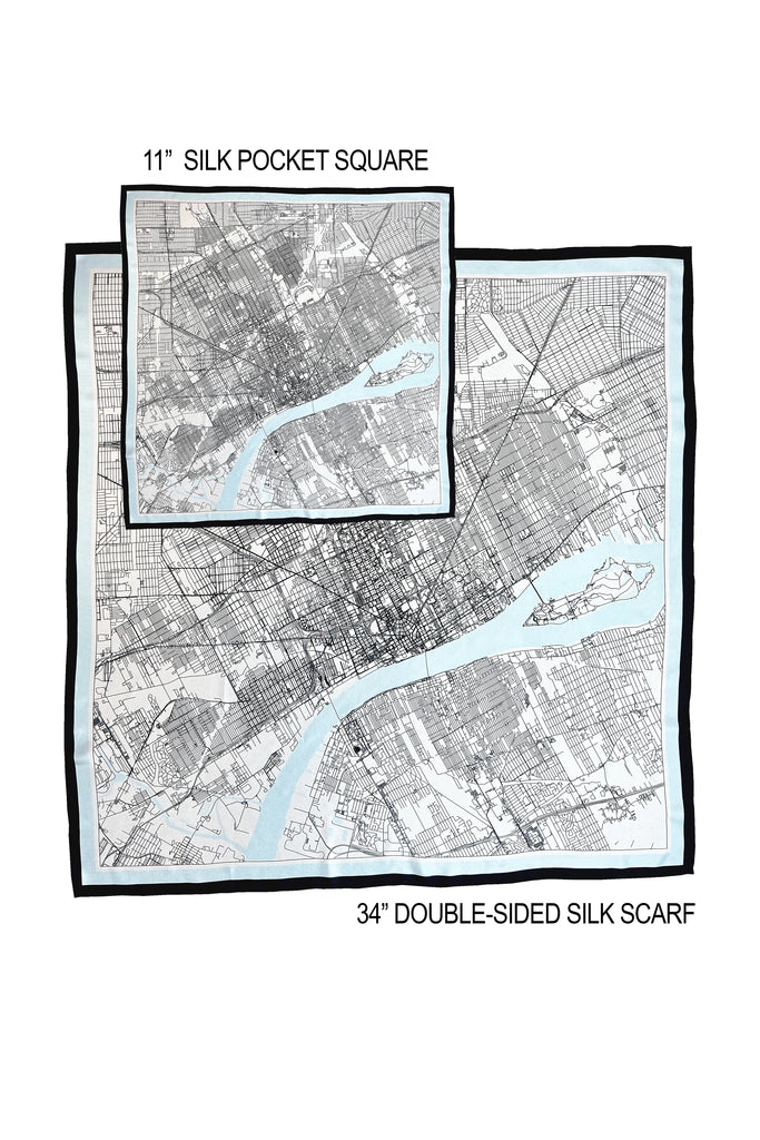 HIS & HERS DETROIT CITY MAP SCARF & POCKET SQUARE
