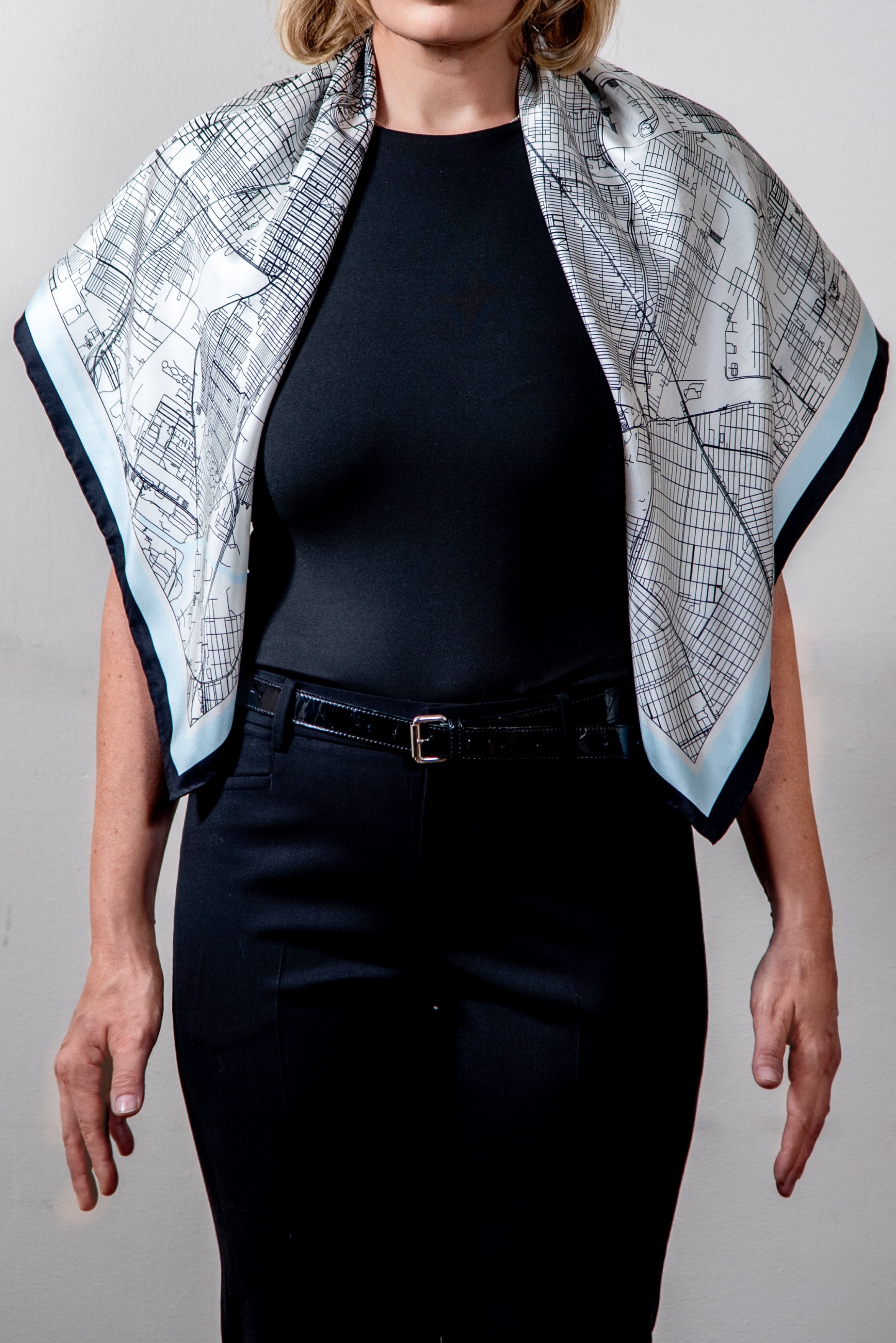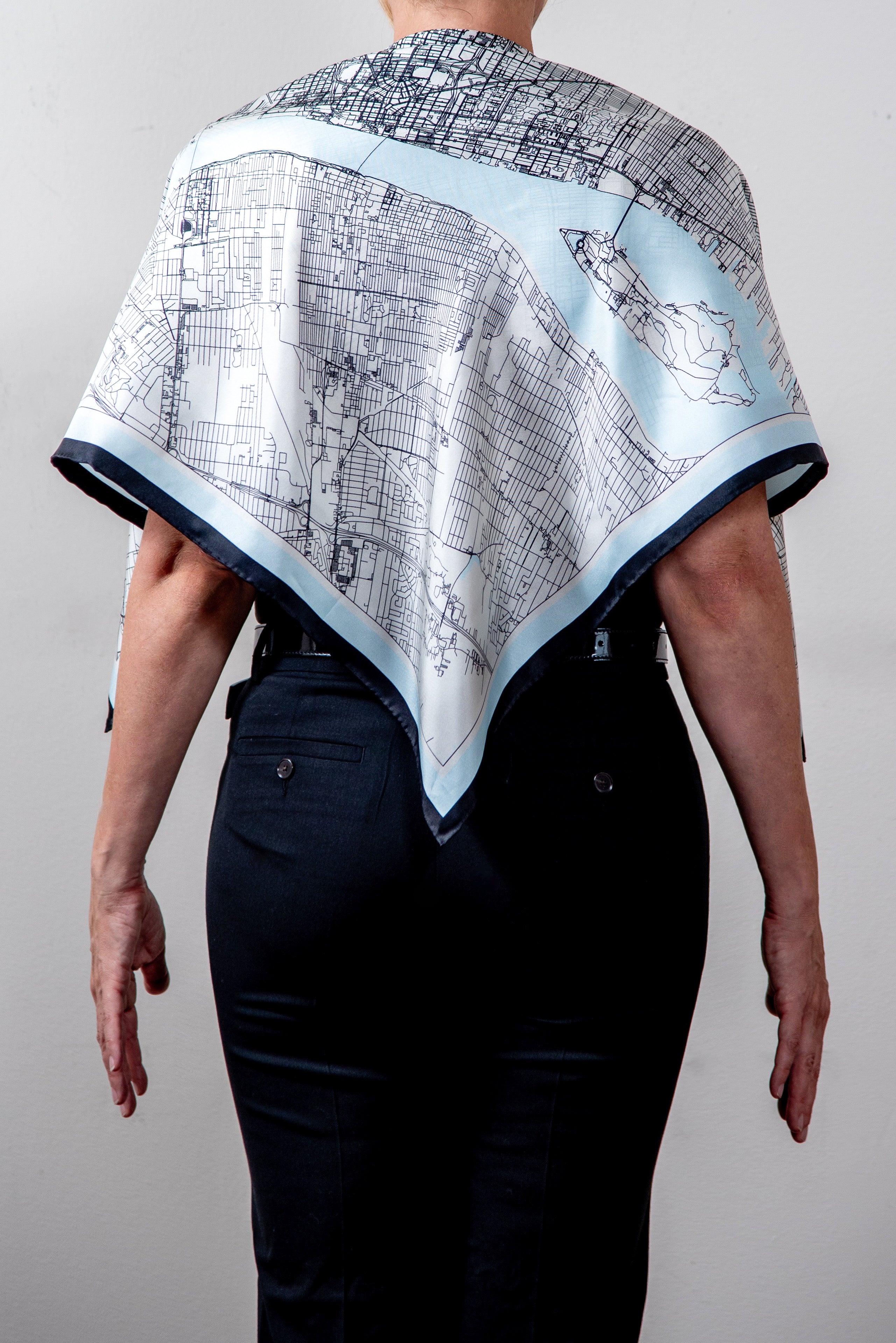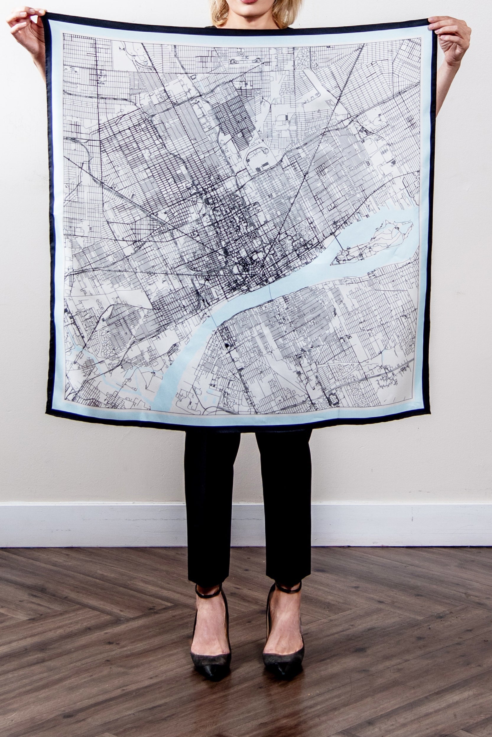 Wrap yourself in the spirit of Detroit. This double-sided silk scarf reveals a meticulously drawn city map — a story of heritage, design, and rebirth. Crafted from exquisite silk, it’s both art and adornment — a timeless expression of elegance, meant to be worn, gifted, and remembered.