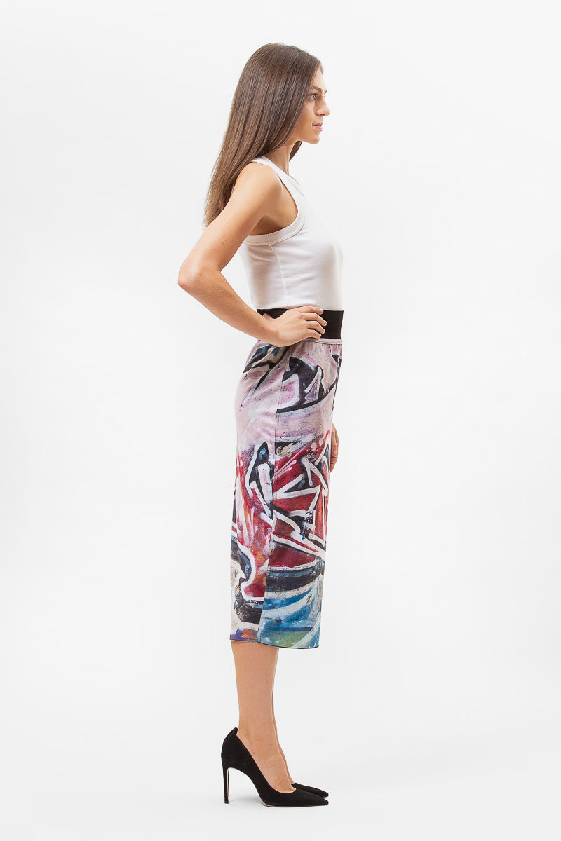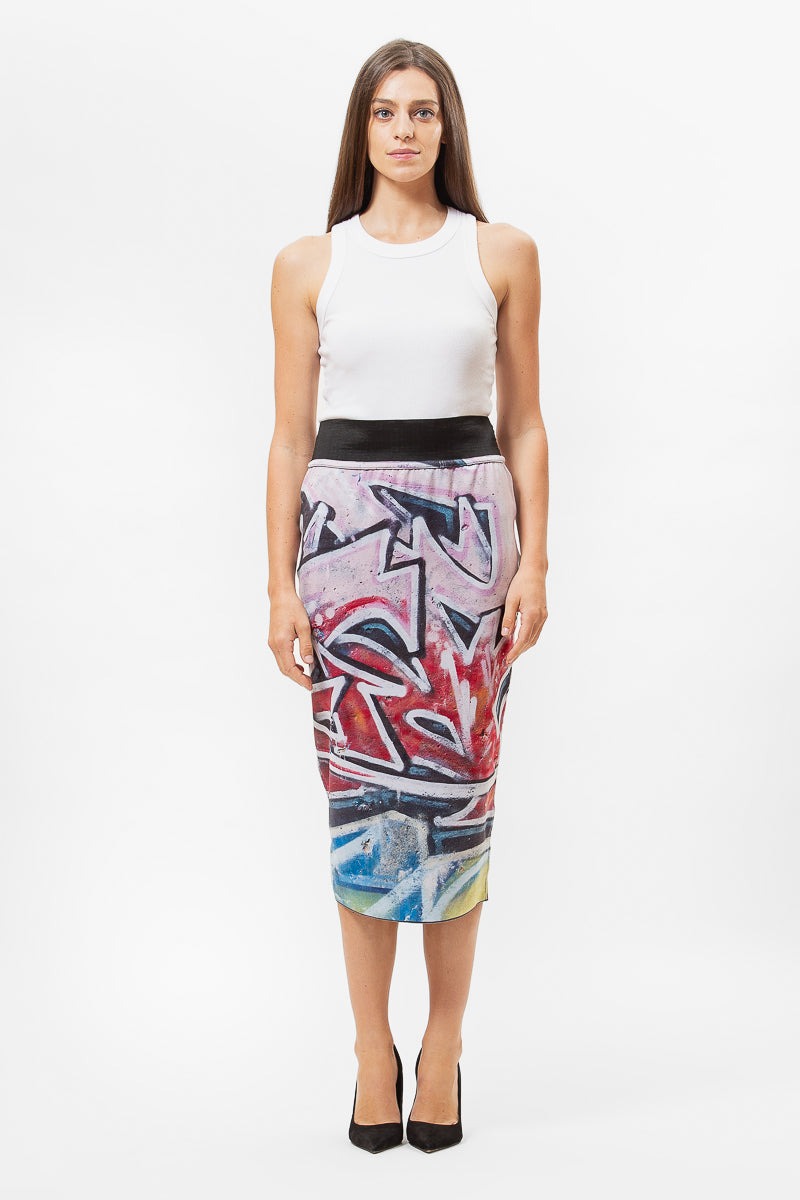 REVERSIBLE GRAFFITI PENCIL SKIRT - 1X SMALL LEFT