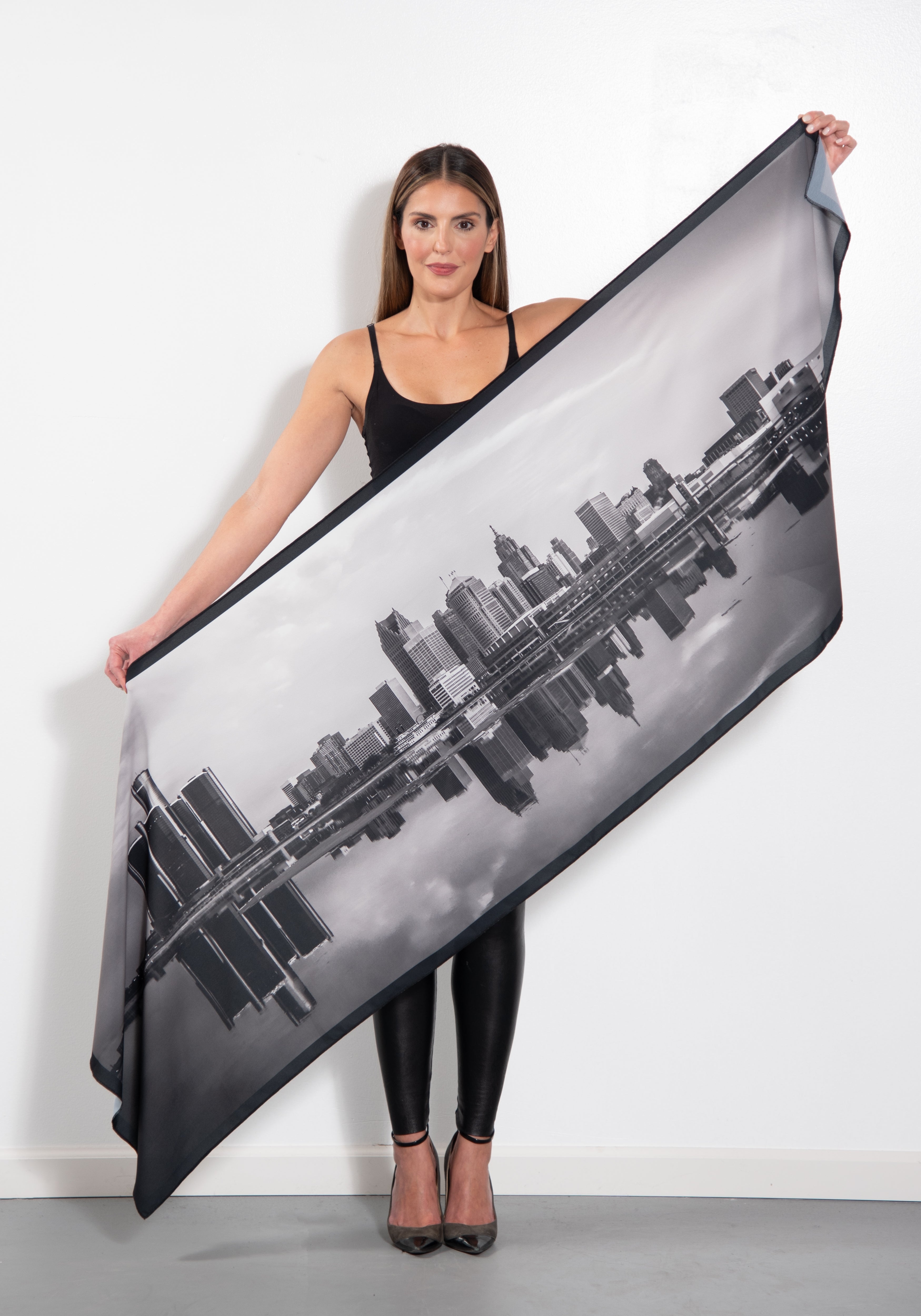 Crafted to be as versatile as it is stylish, this shawl can be worn in a multitude of ways, allowing you to showcase your love for Detroit in your own unique way. Whether draped elegantly over your shoulders as a shawl, wrapped snugly around your neck as a scarf, or fashioned into any other style that fits your mood and outfit, this shawl is sure to make a statement.